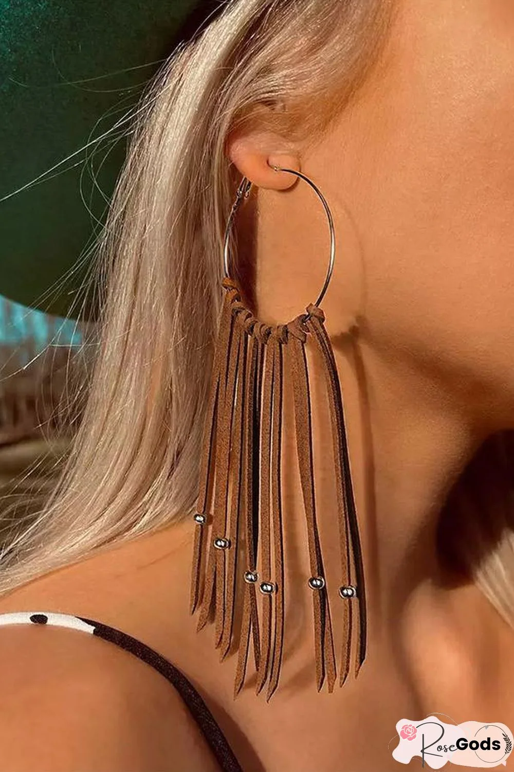 Hand-Woven Tasseled Leather Bohemian Earrings