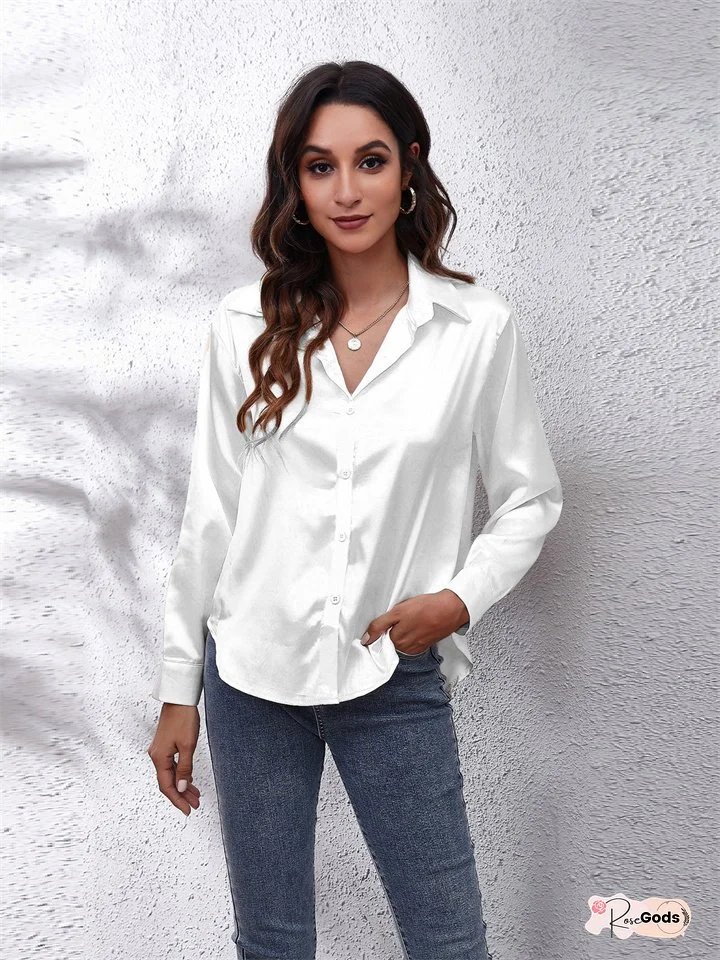 Explosive Real Shot Satin Shirt Female Satin Simulation Silk Long-sleeved Single-breasted Shirt New Straight Type Lapel Women