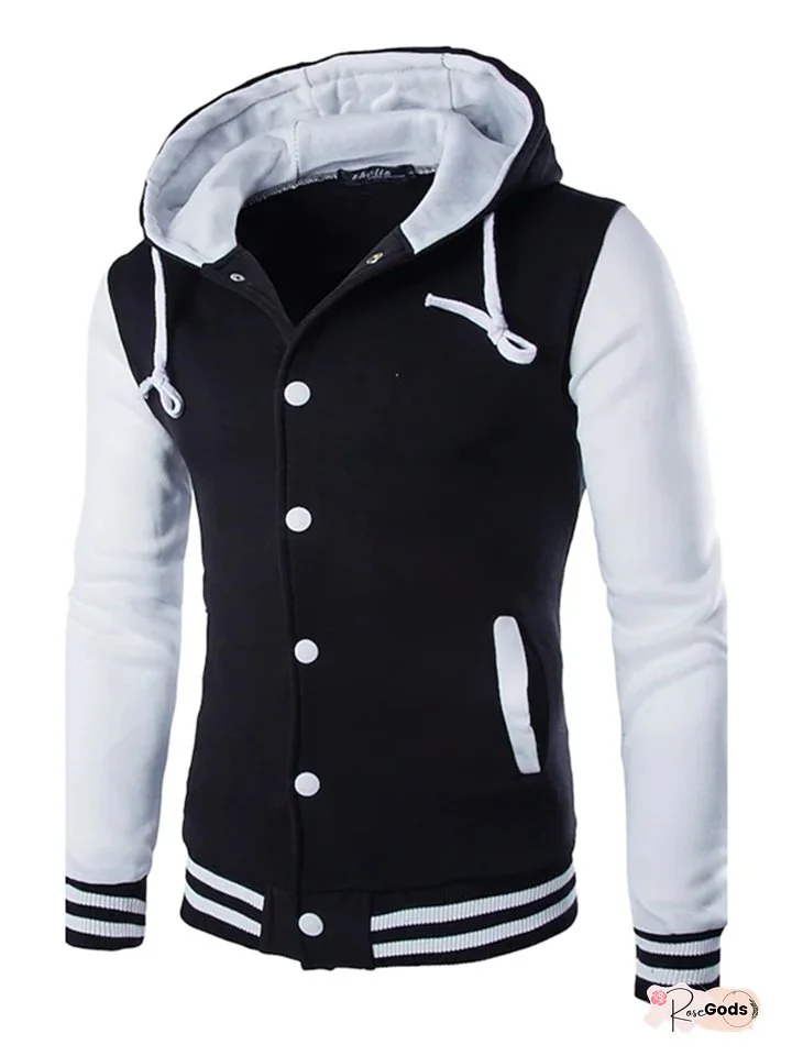 Men's Button Up Hoodie Blue Yellow Wine Red Navy Blue Hooded Color Block Going out Cotton Active Cool Winter Clothing Apparel Hoodies Sweatshirts Long Sleeve