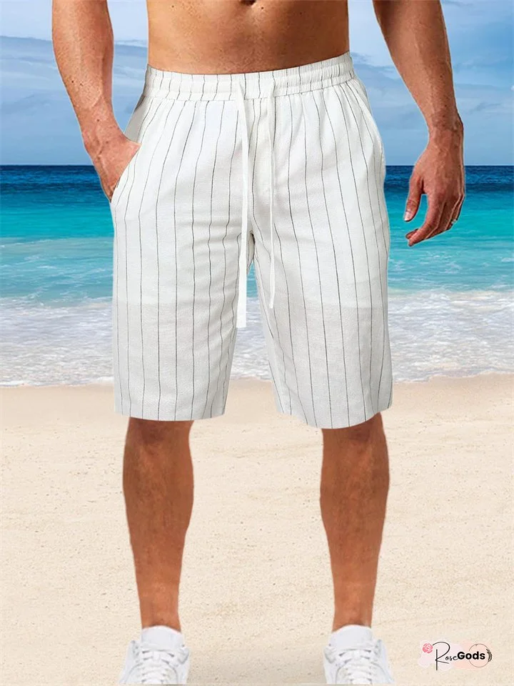 Men's Shorts Linen Shorts Summer Shorts Pocket Stripe Comfort Breathable Outdoor Daily Going out Linen / Cotton Blend Fashion Casual Black White