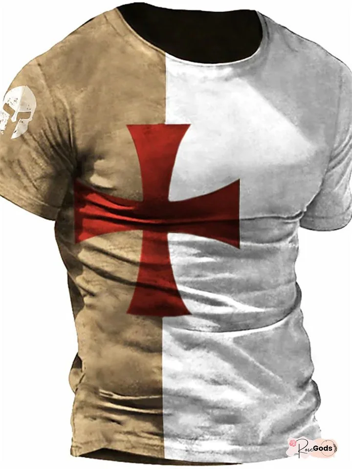Men's Unisex T Shirt Tee Templar Cross Graphic Prints Soldier Crew Neck Black Yellow Blue Purple 3D Print Plus Size Outdoor Street Short Sleeve Print Clothing Apparel Sports Designer Casual Big And