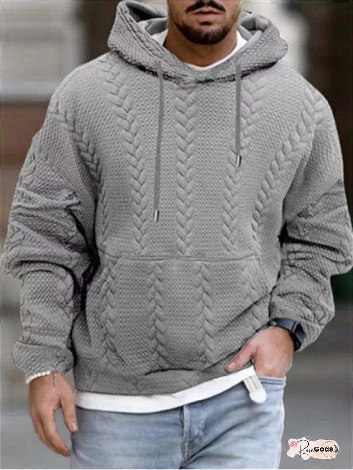 New Autumn Men's Large Size Jacquard Hooded Solid Color Lace-up Long-sleeved Sweater