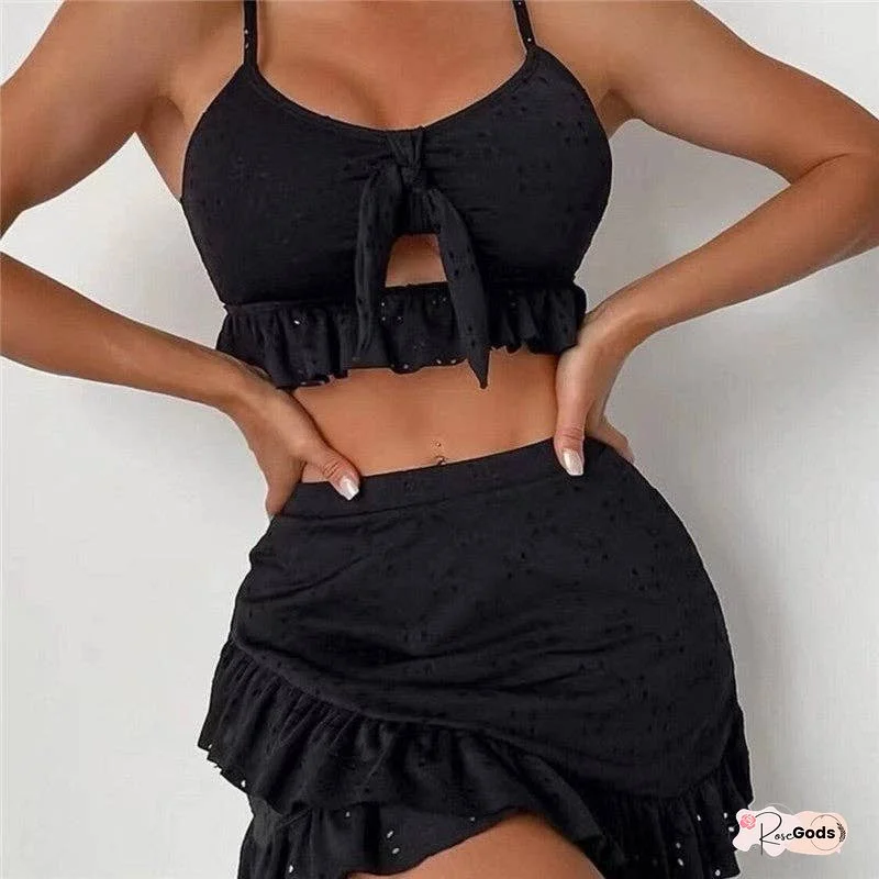 Feature:Falbala,Elasticity,Tied,Hollow Print