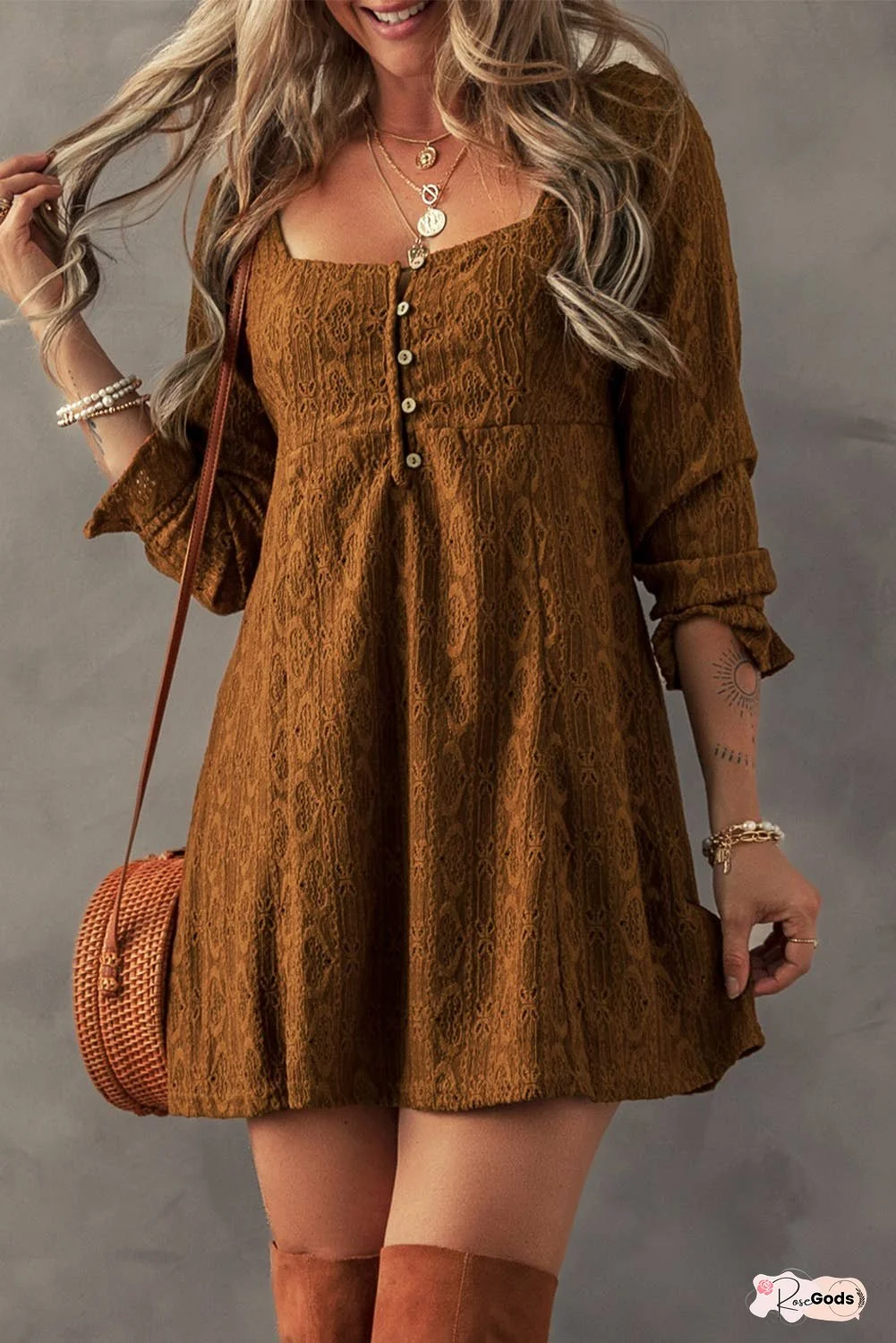 Chic square neck design adds a sophisticated charm.