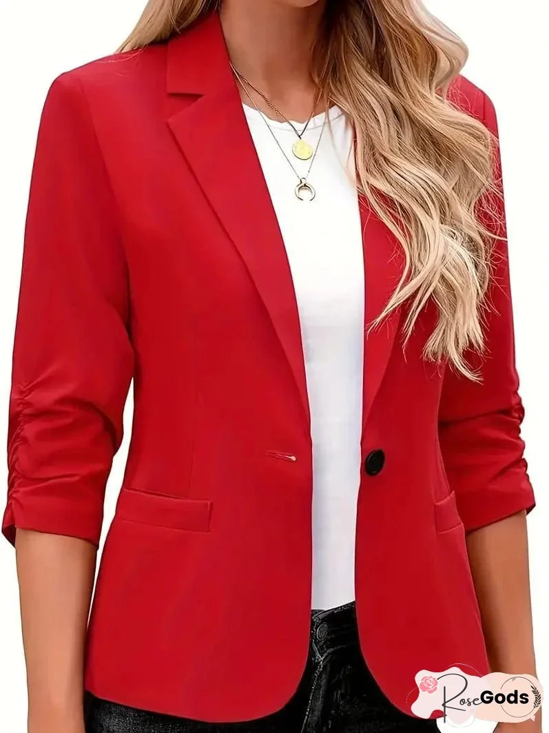 Upgrade your wardrobe with our Solid Button Up Blazer! This blazer features a stylish lapel collar and chic 3/4 sleeves, perfect for adding a touch of sophistication to any outfit. Whether you're heading to the office or out for a casual weekend brunch, this blazer is a versatile piece that can be dressed up or down effortlessly.