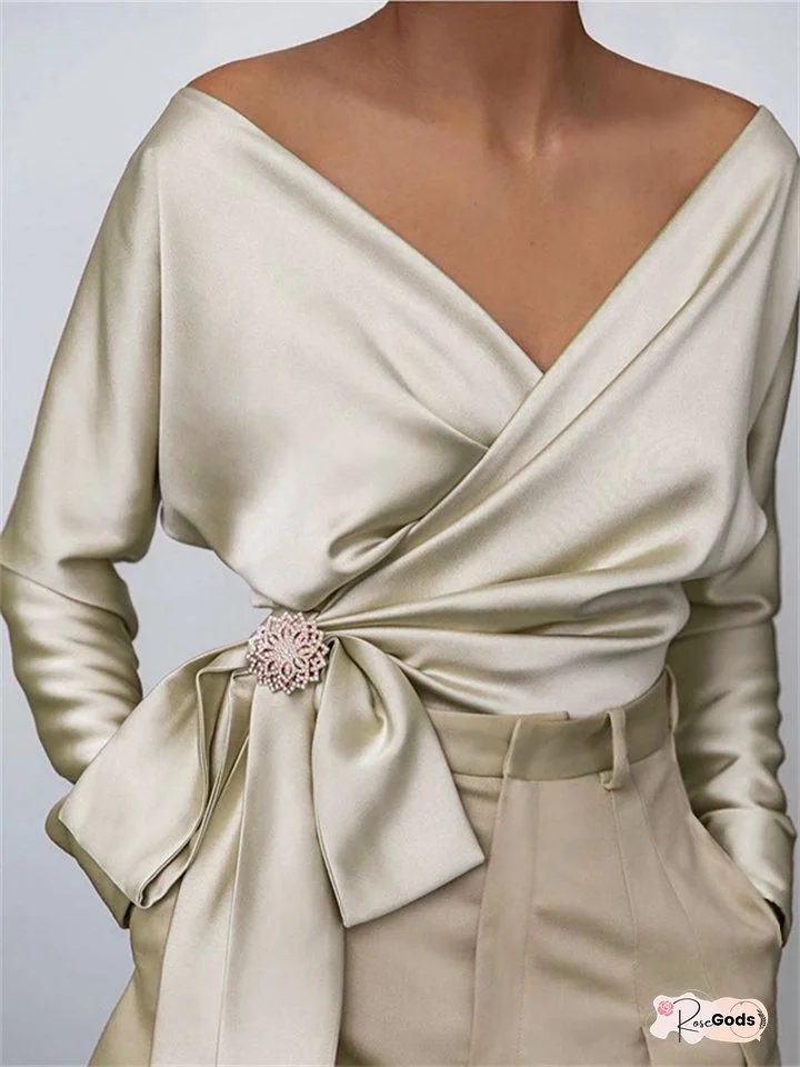 Spring and Summer Fashion Women's Solid Color Sexy V-neck Slim Lace-up Tops