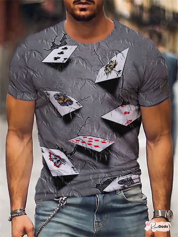 Summer Casual Round Neck Short Sleeve Spade Poker 3D Printed Men's T-Shirt Purple Gray Blue Brown Orange
